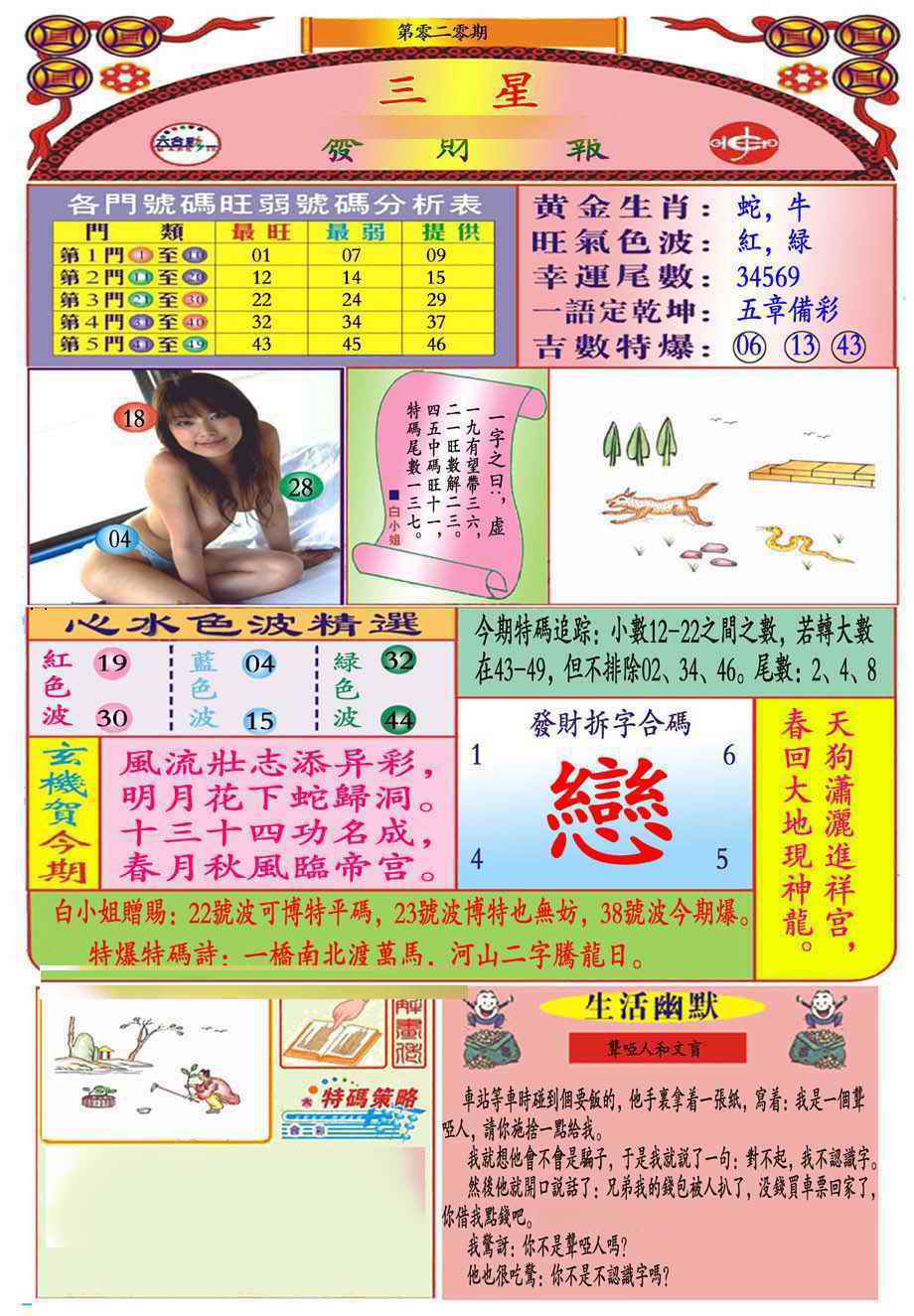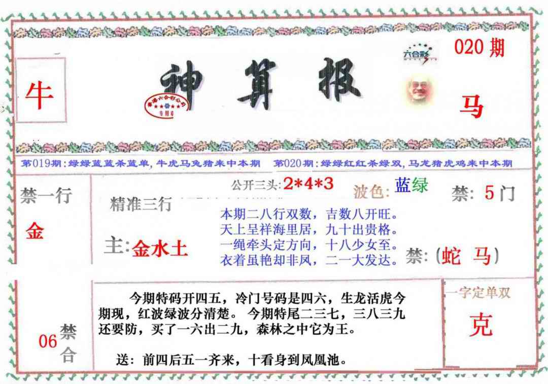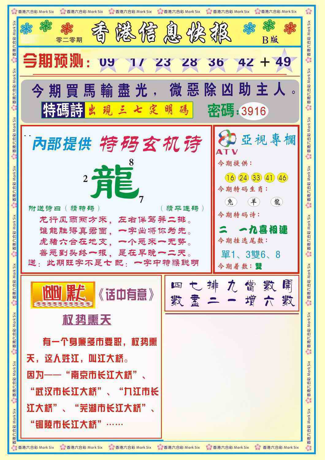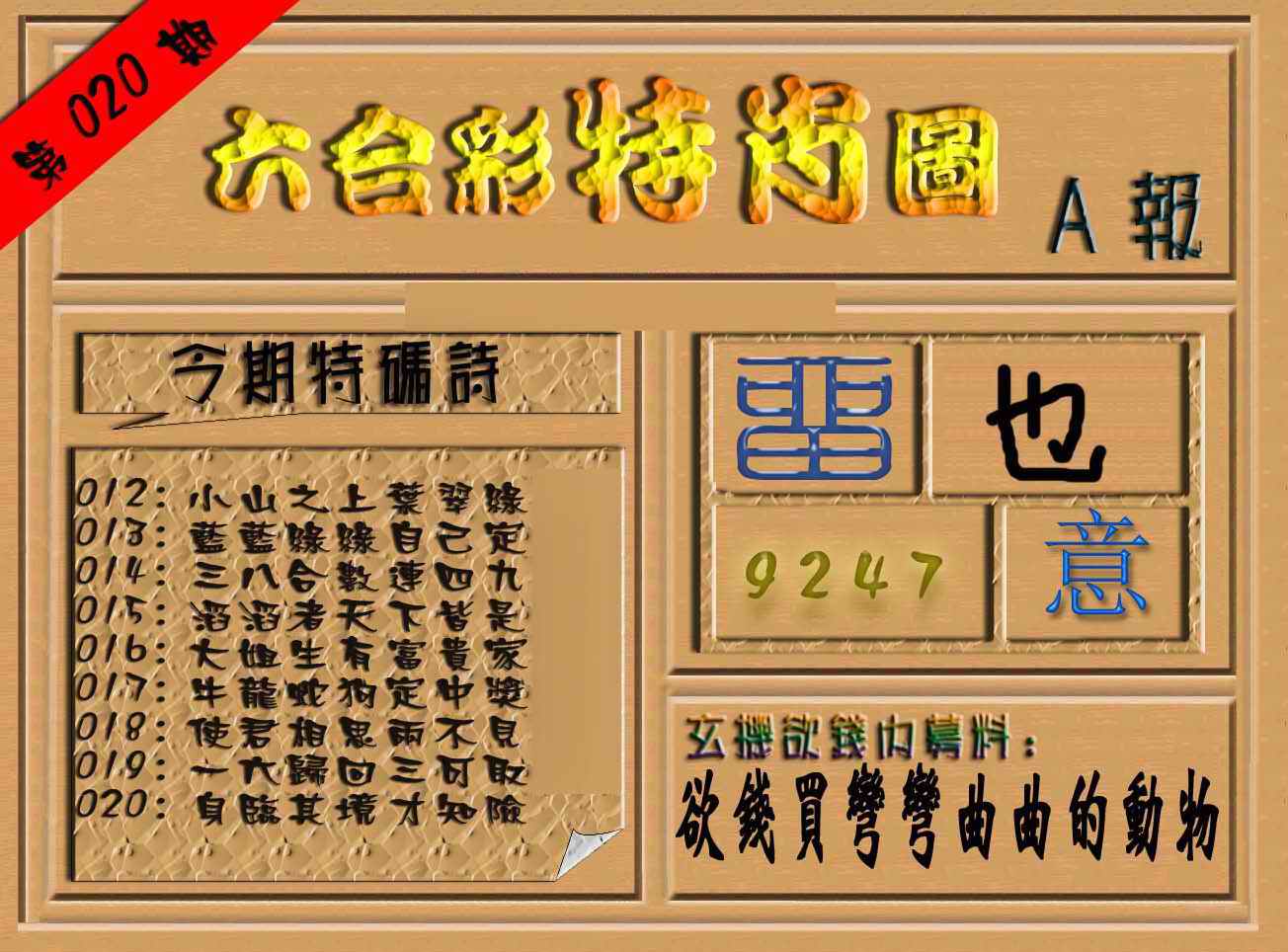 063 六合禅机A 064 六合禅机B 069 特 新 报A 070 特 新 报B