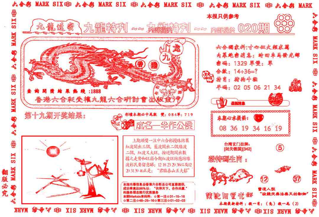 019 黄大仙救世报A 020 黄大仙救世报B 021 香港黄大仙报A 022 香港黄大仙报B