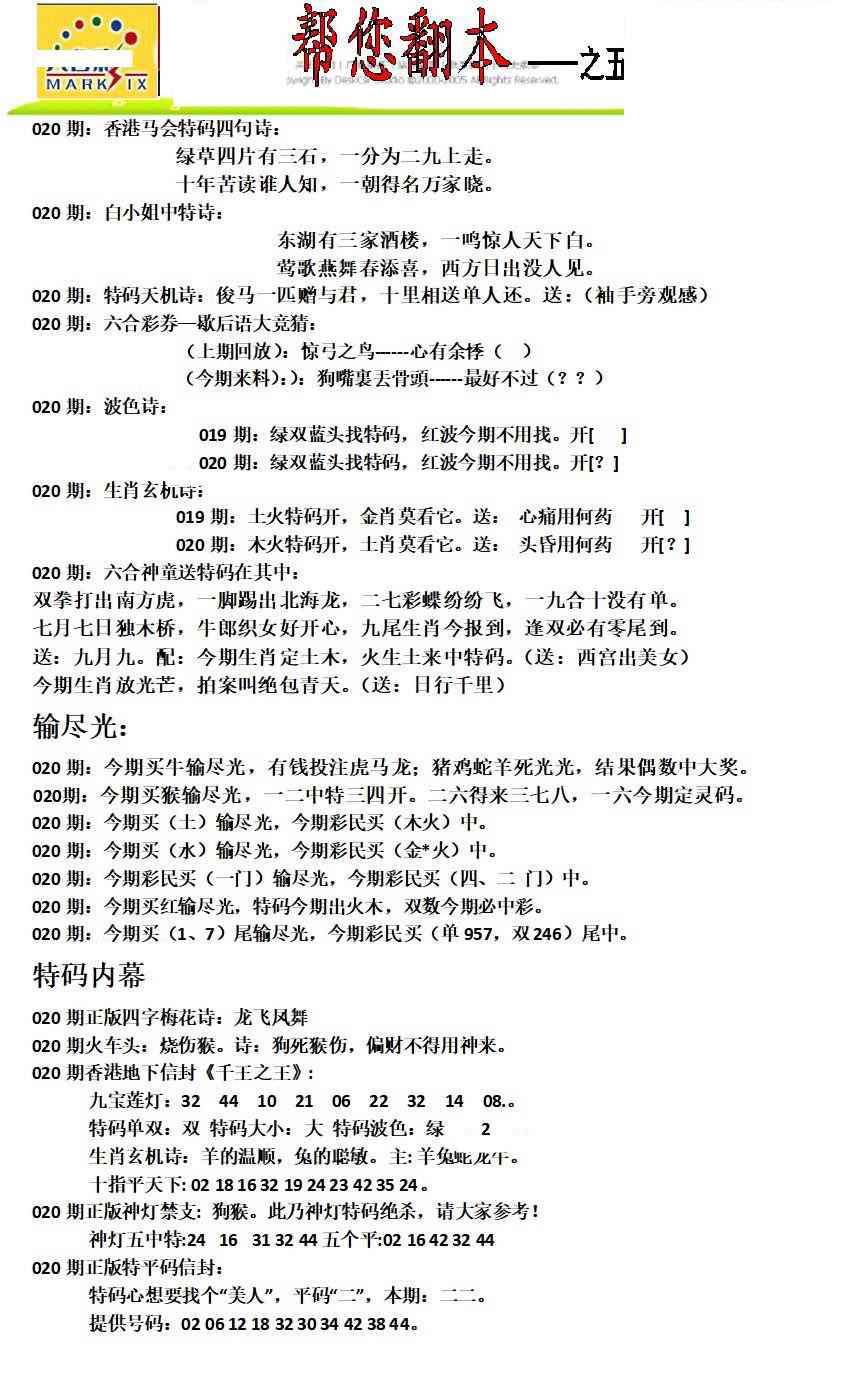 055 玄机新刊A 056 玄机新刊B 057 曾道人玄机A 058 曾道人玄机B